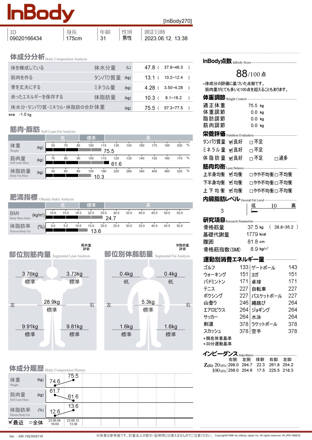 インボディとは、自身の筋肉量や体脂肪量、水分量から栄養状態など、